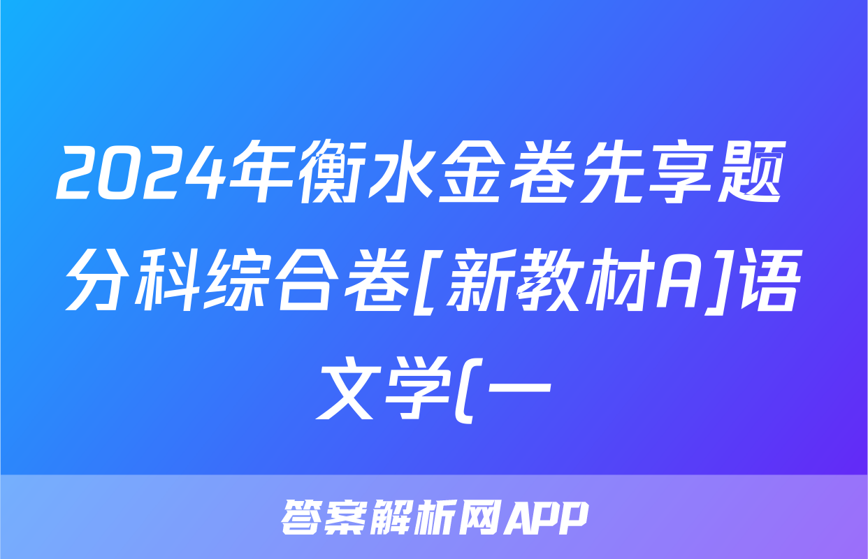 2024年衡水金卷先享题 分科综合卷[新教材A]语文学(一)1试题正在持续更新,目前2026卷行天下答案网为大家整理了相关试题及答案,供大家查缺补漏,高效提升成绩。