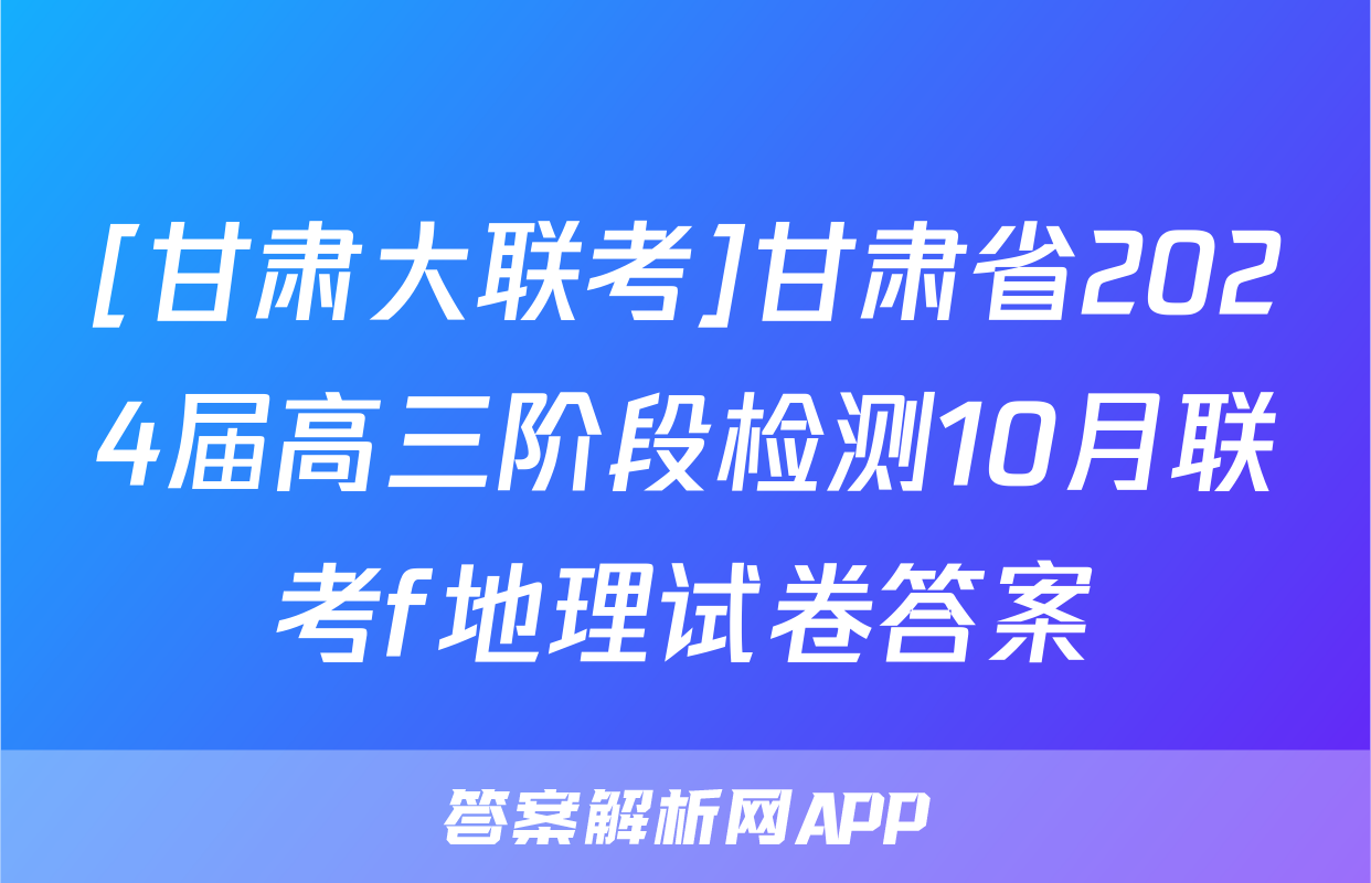 [甘肃大联考]甘肃省2024届高三阶段检测10月联考f地理试卷答案正在持续更新,目前2026卷行天下答案网为大家整理了相关试题及答案,供大家查缺补漏,高效提升成绩。