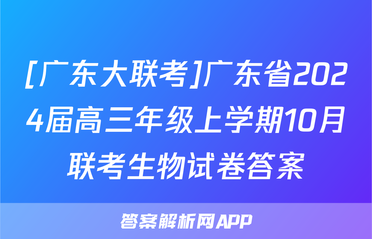 [广东大联考]广东省2024届高三年级上学期10月联考生物试卷答案正在持续更新,目前2026卷行天下答案网为大家整理了相关试题及答案,供大家查缺补漏,高效提升成绩。