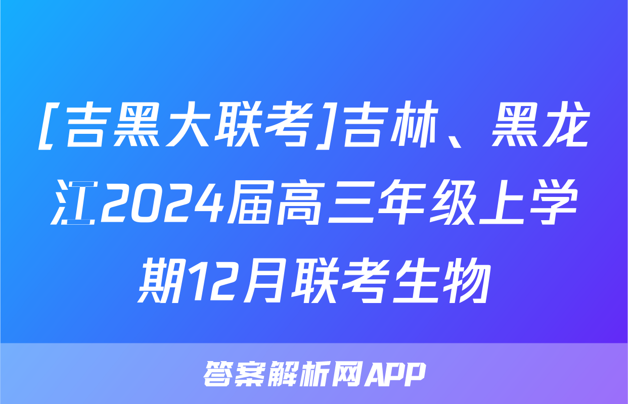 [吉黑大联考]吉林、黑龙江2024届高三年级上学期12月联考生物正在持续更新,目前2026卷行天下答案网为大家整理了相关试题及答案,供大家查缺补漏,高效提升成绩。