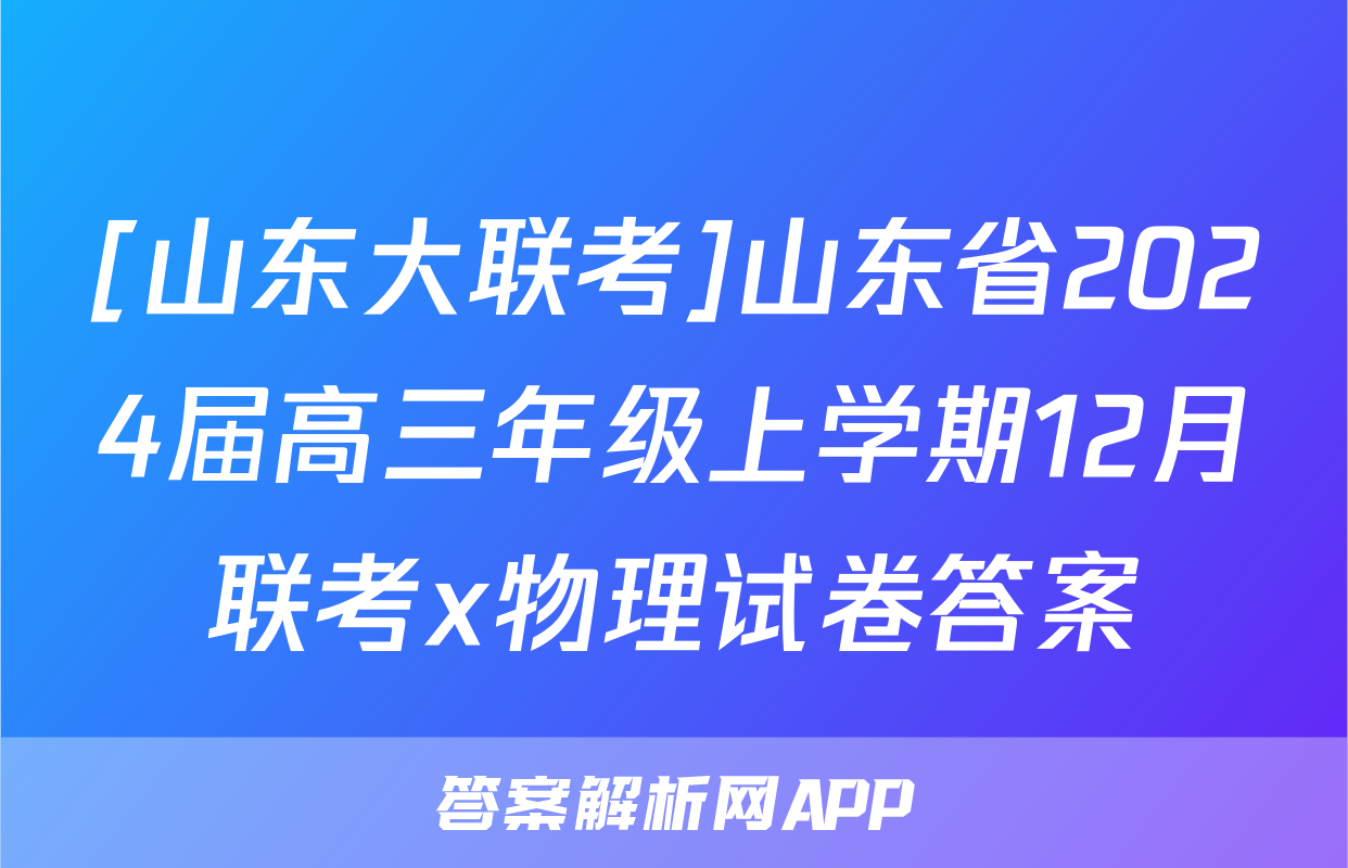 [山东大联考]山东省2024届高三年级上学期12月联考x物理试卷答案正在持续更新,目前2026卷行天下答案网为大家整理了相关试题及答案,供大家查缺补漏,高效提升成绩。