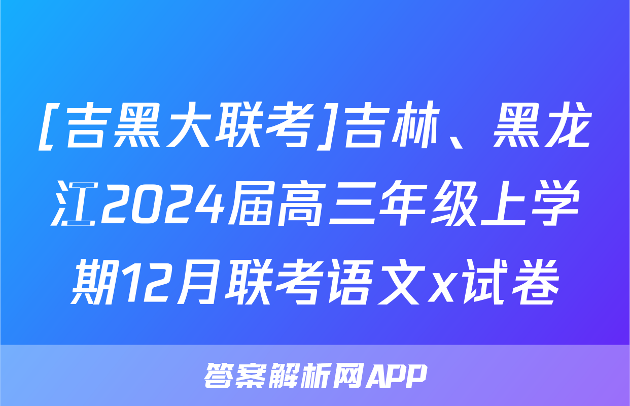 [吉黑大联考]吉林、黑龙江2024届高三年级上学期12月联考语文x试卷正在持续更新,目前2026卷行天下答案网为大家整理了相关试题及答案,供大家查缺补漏,高效提升成绩。