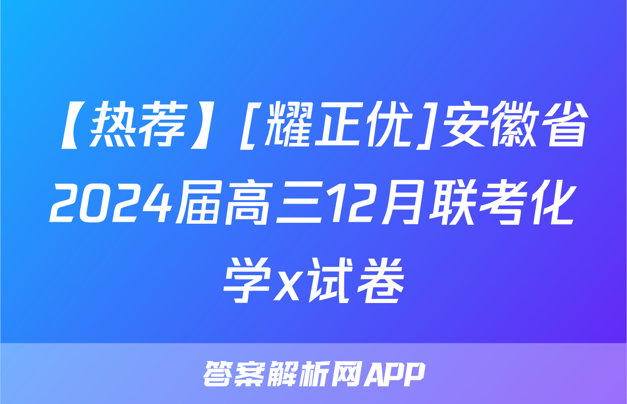 【热荐】[耀正优]安徽省2024届高三12月联考化学x试卷正在持续更新,目前2026卷行天下答案网为大家整理了相关试题及答案,供大家查缺补漏,高效提升成绩。