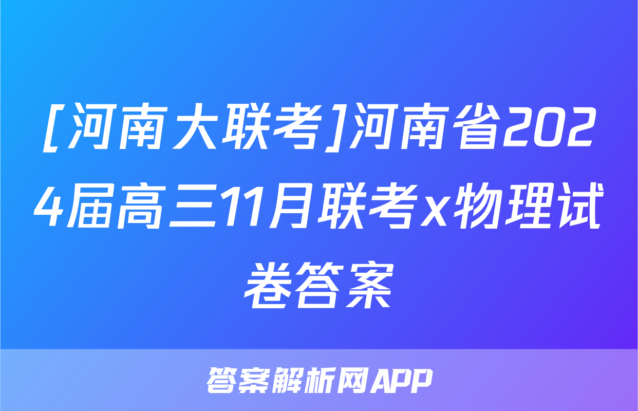 [河南大联考]河南省2024届高三11月联考x物理试卷答案正在持续更新,目前2026卷行天下答案网为大家整理了相关试题及答案,供大家查缺补漏,高效提升成绩。