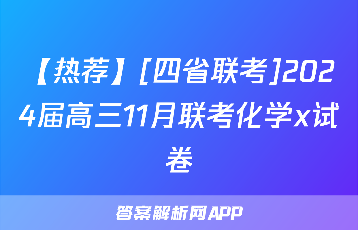 【热荐】[四省联考]2024届高三11月联考化学x试卷正在持续更新,目前2026卷行天下答案网为大家整理了相关试题及答案,供大家查缺补漏,高效提升成绩。