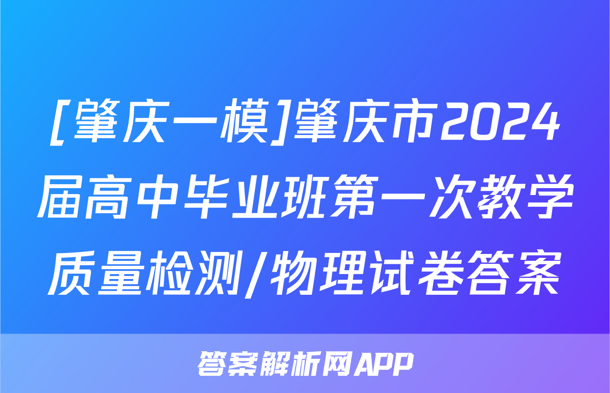 [肇庆一模]肇庆市2024届高中毕业班第一次教学质量检测/物理试卷答案正在持续更新,目前2026卷行天下答案网为大家整理了相关试题及答案,供大家查缺补漏,高效提升成绩。