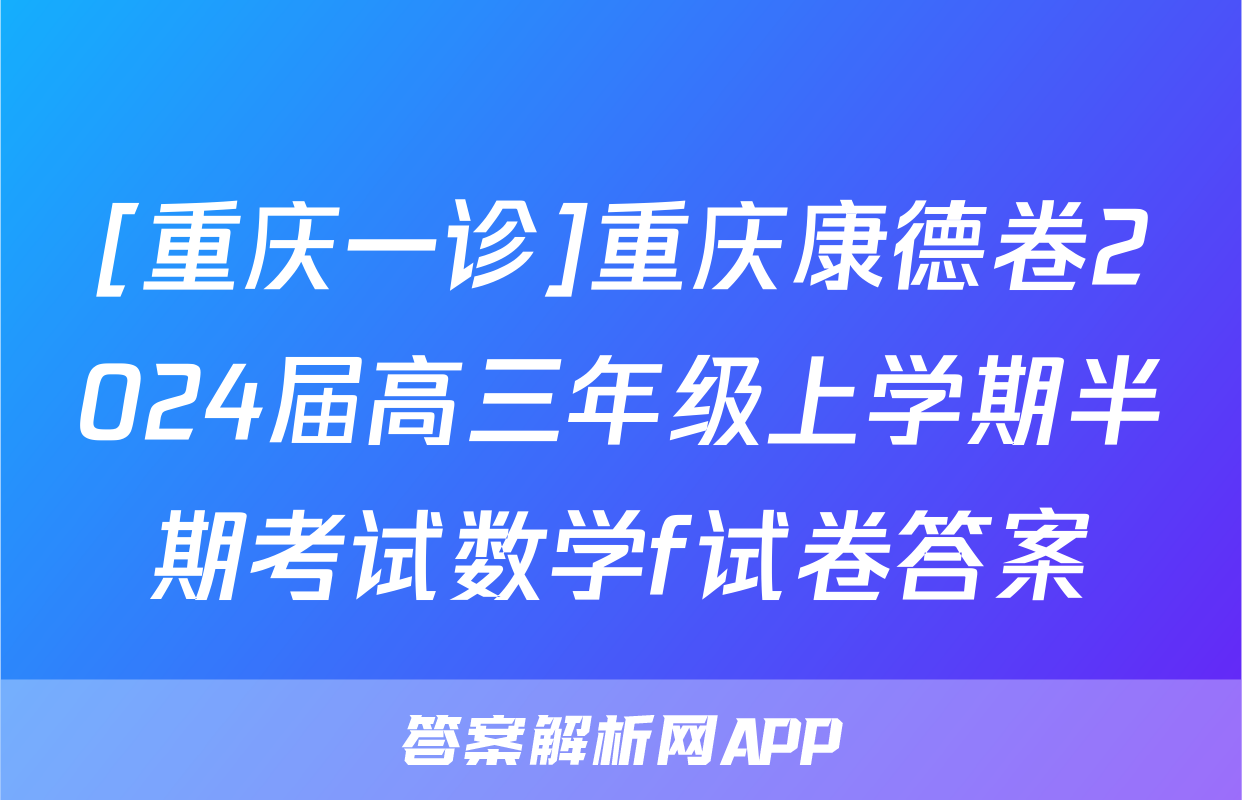 [重庆一诊]重庆康德卷2024届高三年级上学期半期考试数学f试卷答案正在持续更新,目前2026卷行天下答案网为大家整理了相关试题及答案,供大家查缺补漏,高效提升成绩。