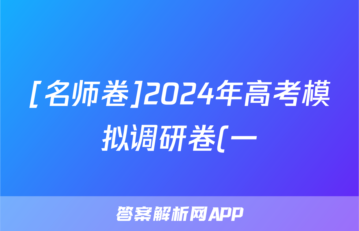 [名师卷]2024年高考模拟调研卷(一)1化学(新教材▣)试题正在持续更新,目前2026卷行天下答案网为大家整理了相关试题及答案,供大家查缺补漏,高效提升成绩。