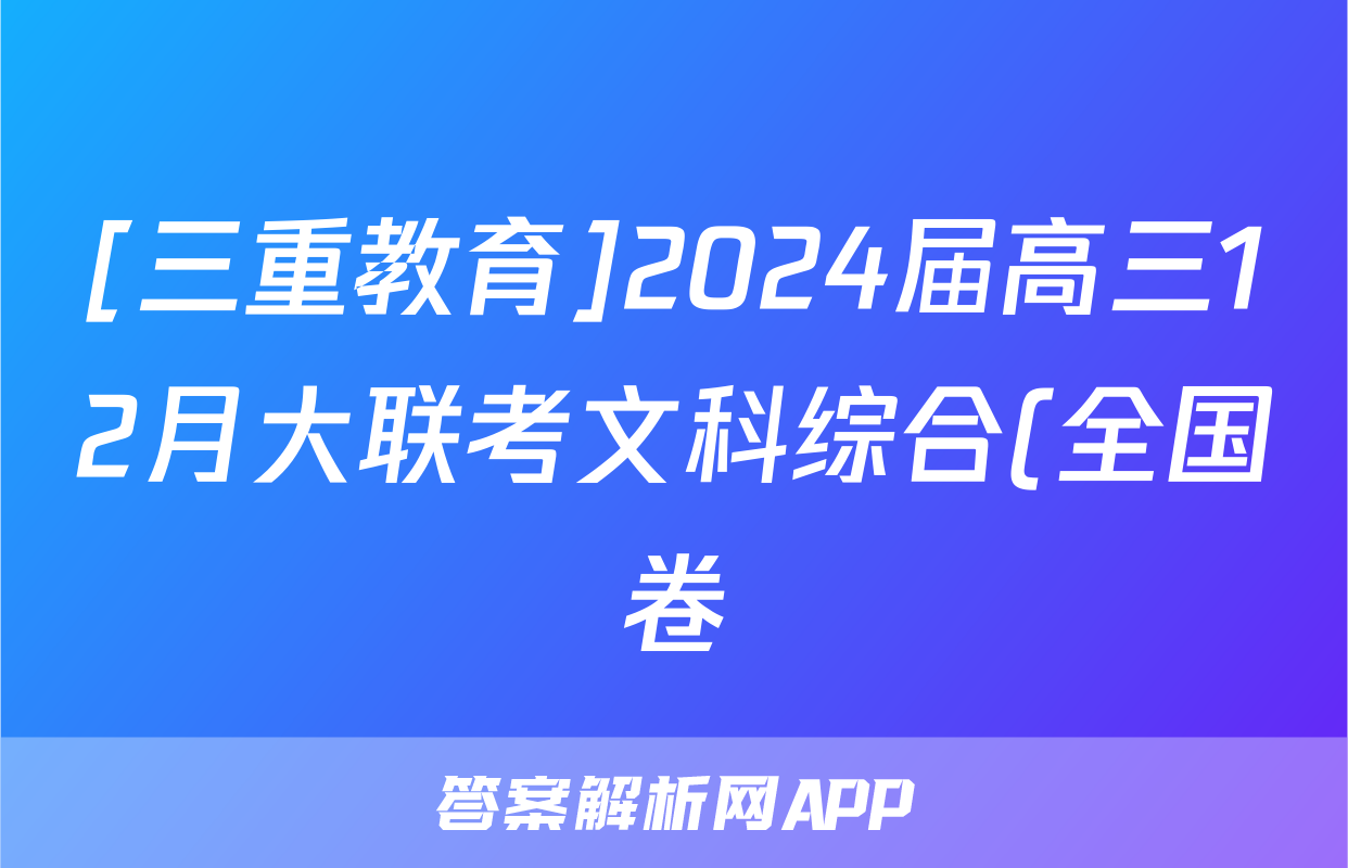 [三重教育]2024届高三12月大联考文科综合(全国卷)答案正在持续更新,目前2026卷行天下答案网为大家整理了相关试题及答案,供大家查缺补漏,高效提升成绩。