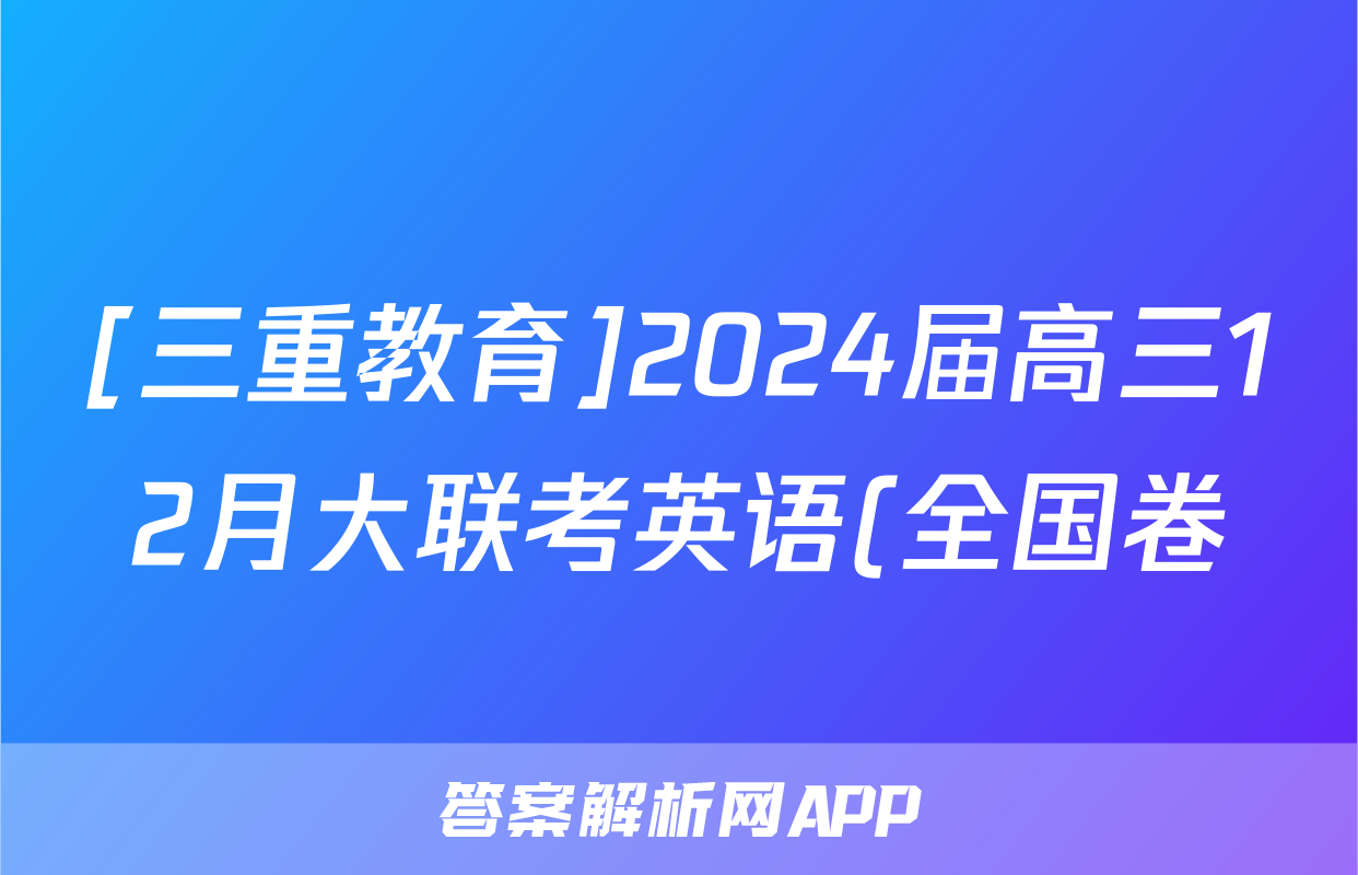 [三重教育]2024届高三12月大联考英语(全国卷)试题正在持续更新,目前2026卷行天下答案网为大家整理了相关试题及答案,供大家查缺补漏,高效提升成绩。