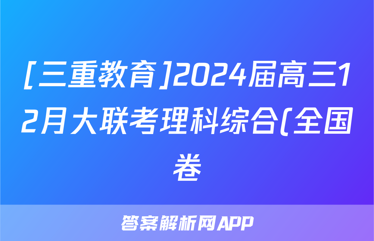 [三重教育]2024届高三12月大联考理科综合(全国卷)试题正在持续更新,目前2026卷行天下答案网为大家整理了相关试题及答案,供大家查缺补漏,高效提升成绩。