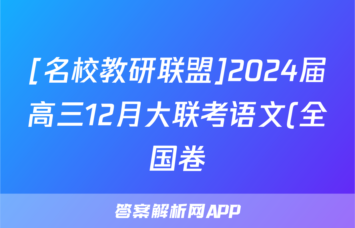 [名校教研联盟]2024届高三12月大联考语文(全国卷)试题正在持续更新,目前2026卷行天下答案网为大家整理了相关试题及答案,供大家查缺补漏,高效提升成绩。