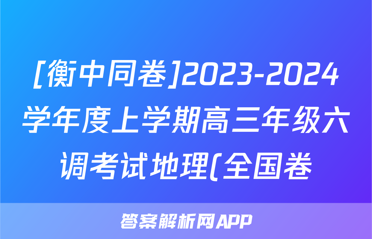 [衡中同卷]2023-2024学年度上学期高三年级六调考试地理(全国卷)答案正在持续更新,目前2026卷行天下答案网为大家整理了相关试题及答案,供大家查缺补漏,高效提升成绩。