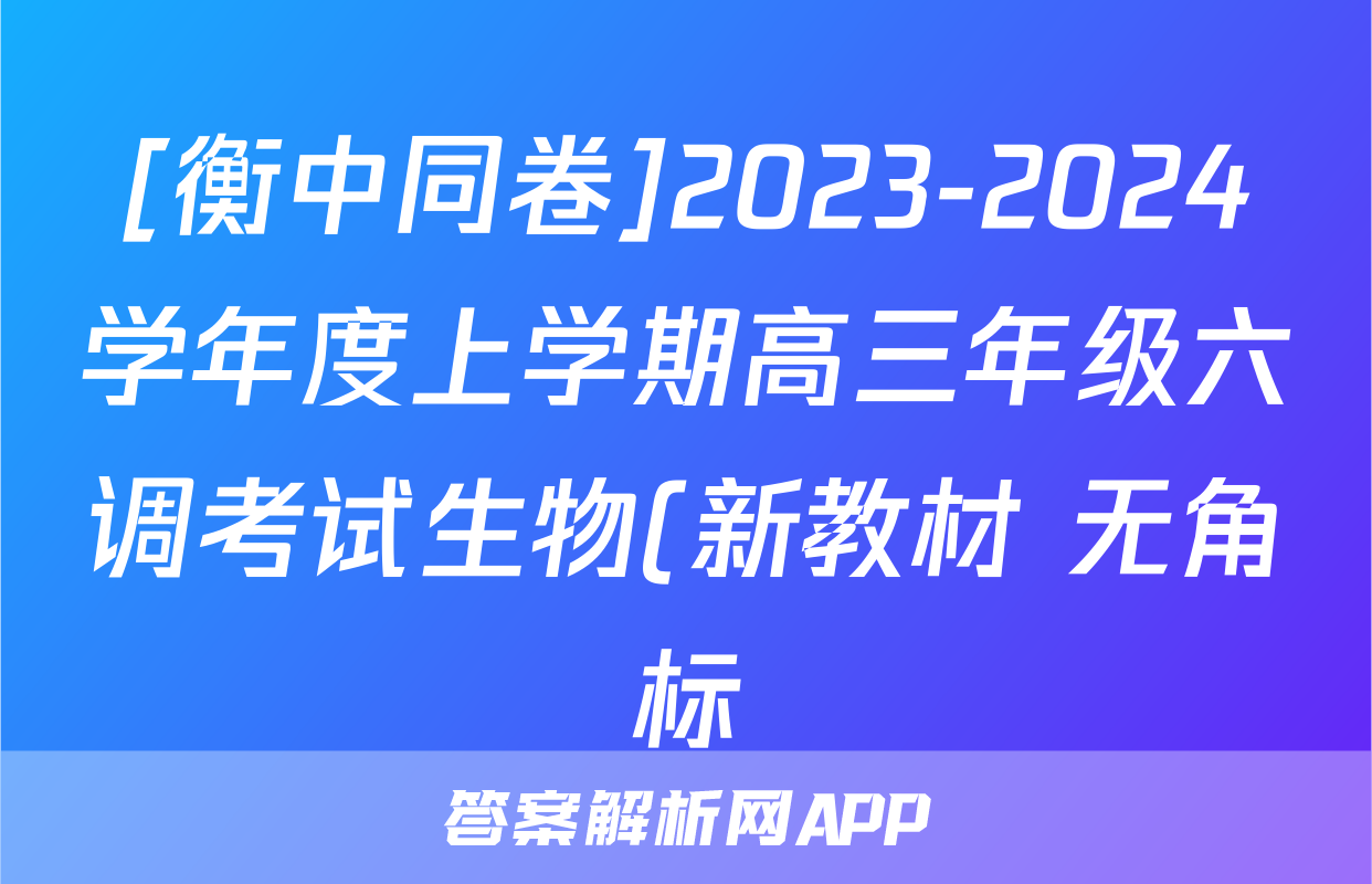 [衡中同卷]2023-2024学年度上学期高三年级六调考试生物(新教材 无角标)答案正在持续更新,目前2026卷行天下答案网为大家整理了相关试题及答案,供大家查缺补漏,高效提升成绩。