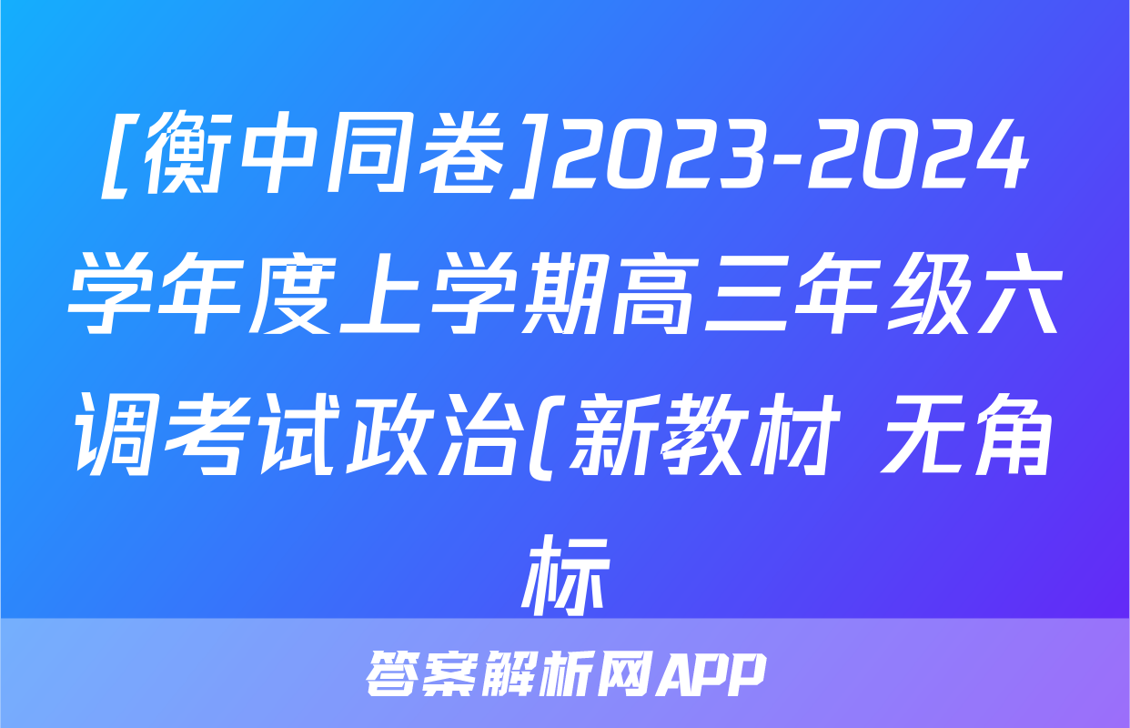[衡中同卷]2023-2024学年度上学期高三年级六调考试政治(新教材 无角标)答案正在持续更新,目前2026卷行天下答案网为大家整理了相关试题及答案,供大家查缺补漏,高效提升成绩。