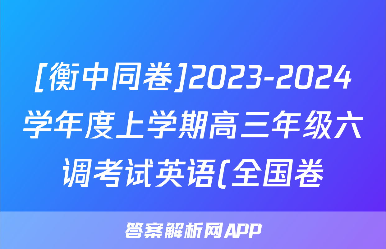 [衡中同卷]2023-2024学年度上学期高三年级六调考试英语(全国卷)试题正在持续更新,目前2026卷行天下答案网为大家整理了相关试题及答案,供大家查缺补漏,高效提升成绩。