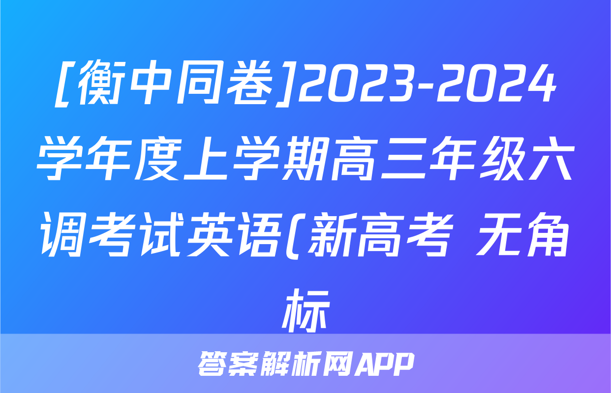[衡中同卷]2023-2024学年度上学期高三年级六调考试英语(新高考 无角标)试题正在持续更新,目前2026卷行天下答案网为大家整理了相关试题及答案,供大家查缺补漏,高效提升成绩。