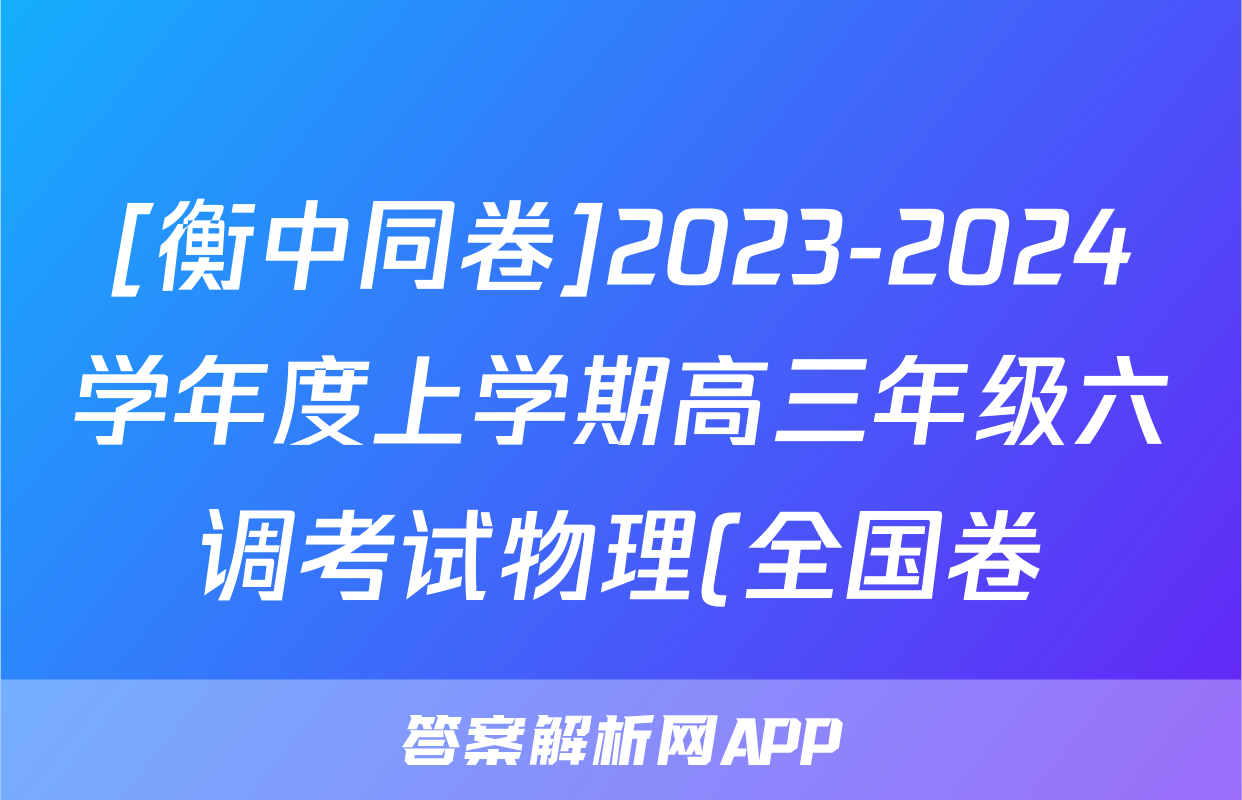 [衡中同卷]2023-2024学年度上学期高三年级六调考试物理(全国卷)试题正在持续更新,目前2026卷行天下答案网为大家整理了相关试题及答案,供大家查缺补漏,高效提升成绩。