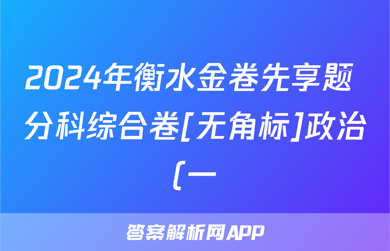 2024年衡水金卷先享题 分科综合卷[无角标]政治(一)1试题正在持续更新,目前2026卷行天下答案网为大家整理了相关试题及答案,供大家查缺补漏,高效提升成绩。