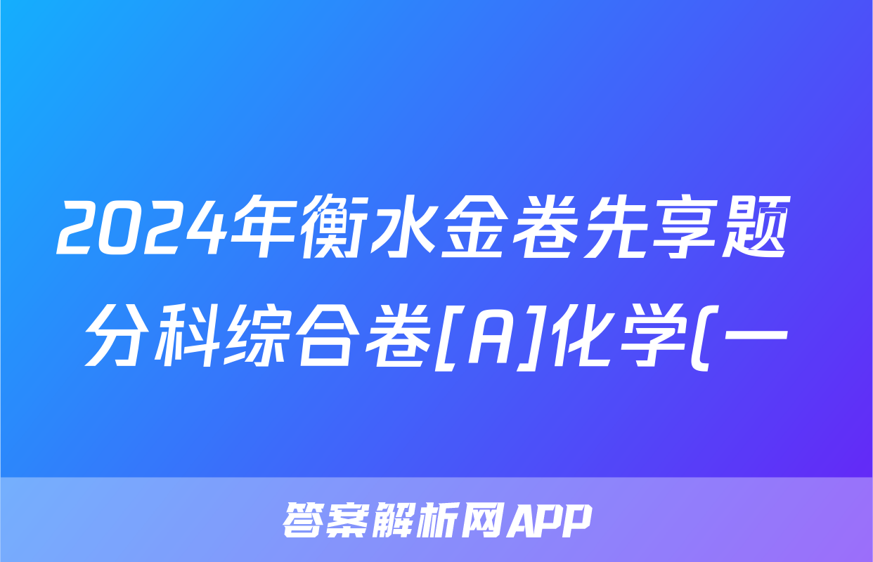 2024年衡水金卷先享题 分科综合卷[A]化学(一)1答案正在持续更新,目前2026卷行天下答案网为大家整理了相关试题及答案,供大家查缺补漏,高效提升成绩。