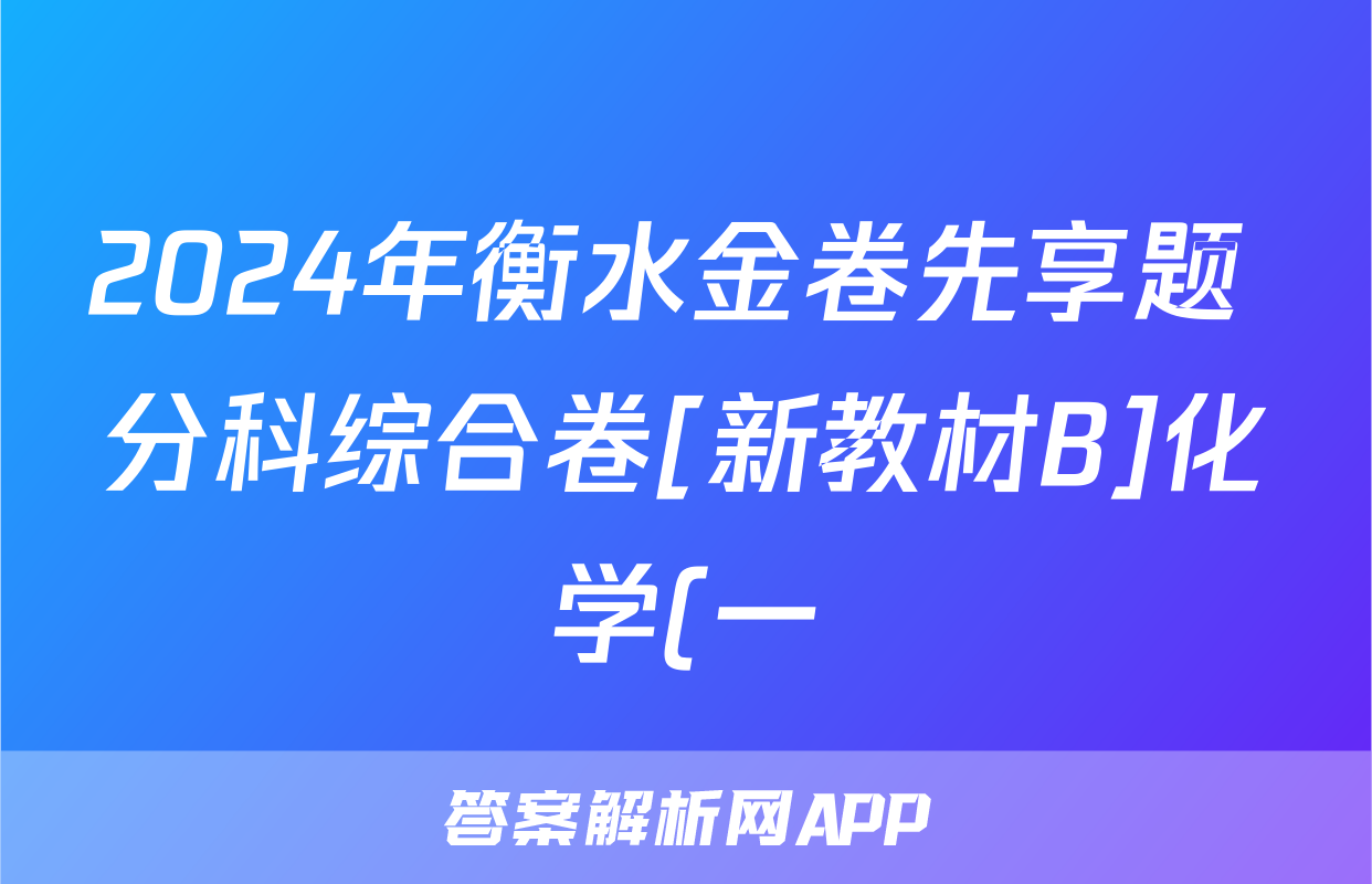 2024年衡水金卷先享题 分科综合卷[新教材B]化学(一)1答案正在持续更新,目前2026卷行天下答案网为大家整理了相关试题及答案,供大家查缺补漏,高效提升成绩。