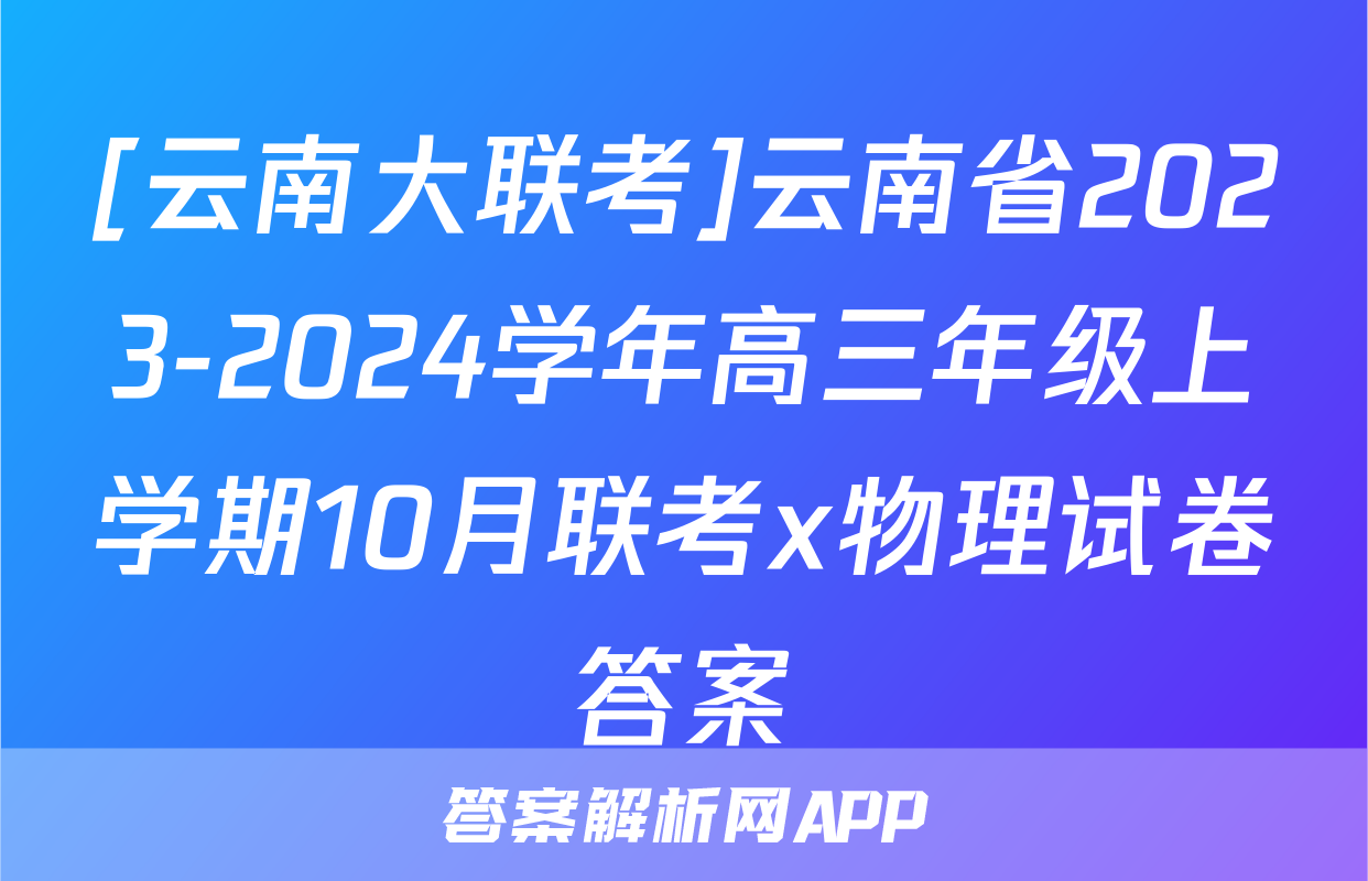 [云南大联考]云南省2023-2024学年高三年级上学期10月联考x物理试卷答案正在持续更新,目前2026卷行天下答案网为大家整理了相关试题及答案,供大家查缺补漏,高效提升成绩。