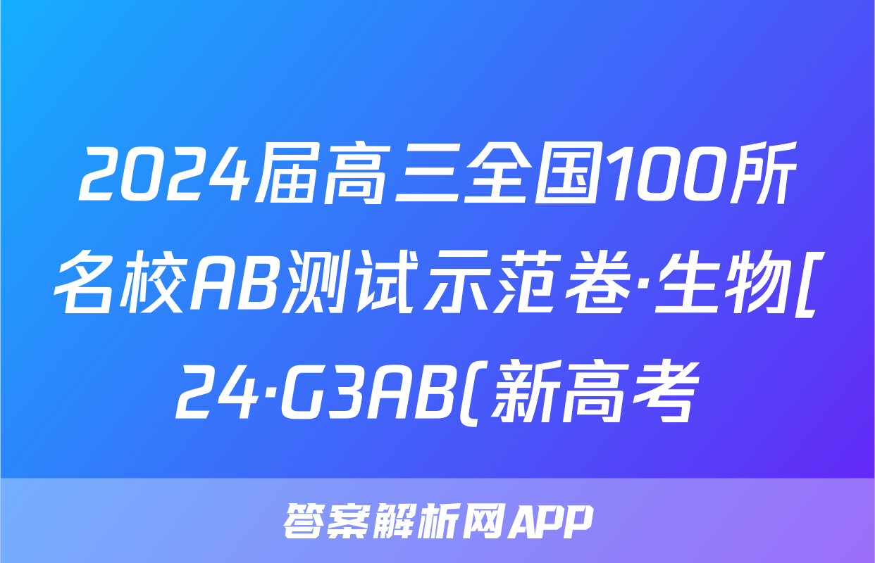 2024届高三全国100所名校AB测试示范卷·生物[24·G3AB(新高考)·生物-R-必考-QG]四试题正在持续更新,目前2026卷行天下答案网为大家整理了相关试题及答案,供大家查缺补漏,高效提升成绩。