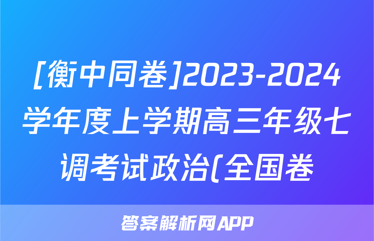[衡中同卷]2023-2024学年度上学期高三年级七调考试政治(全国卷)试题正在持续更新,目前2026卷行天下答案网为大家整理了相关试题及答案,供大家查缺补漏,高效提升成绩。