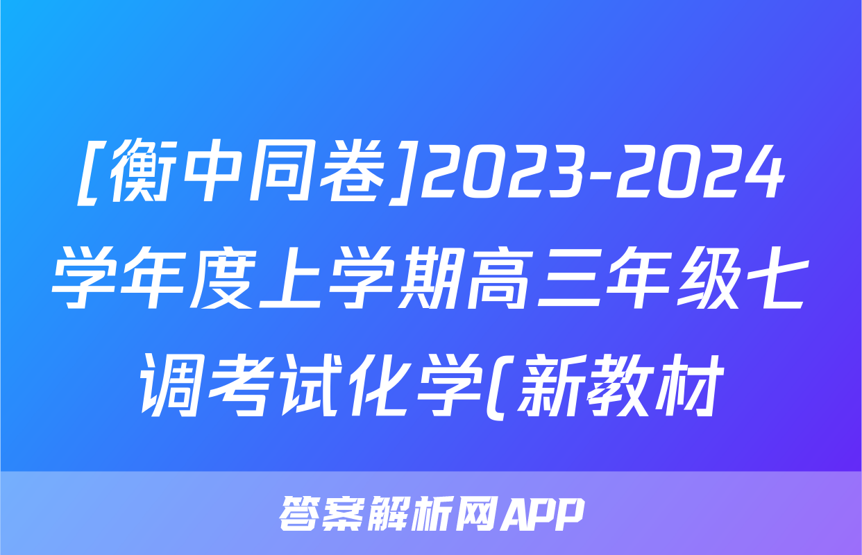 [衡中同卷]2023-2024学年度上学期高三年级七调考试化学(新教材)试题正在持续更新,目前2026卷行天下答案网为大家整理了相关试题及答案,供大家查缺补漏,高效提升成绩。
