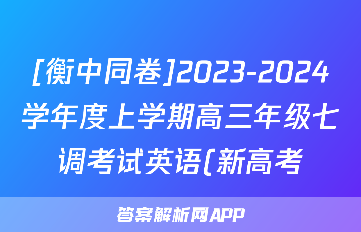 [衡中同卷]2023-2024学年度上学期高三年级七调考试英语(新高考)试题正在持续更新,目前2026卷行天下答案网为大家整理了相关试题及答案,供大家查缺补漏,高效提升成绩。