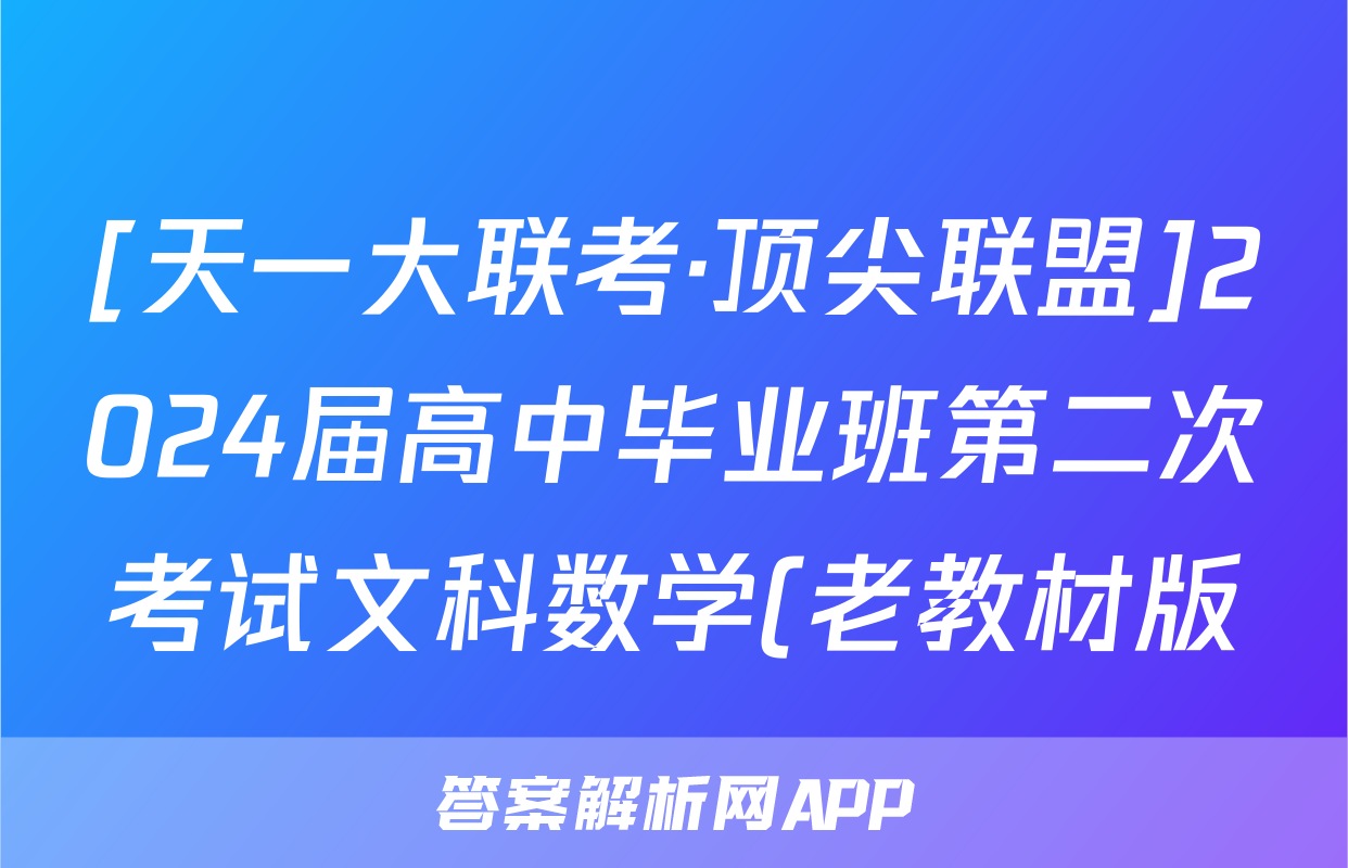 [天一大联考·顶尖联盟]2024届高中毕业班第二次考试文科数学(老教材版)答案正在持续更新,目前2026卷行天下答案网为大家整理了相关试题及答案,供大家查缺补漏,高效提升成绩。