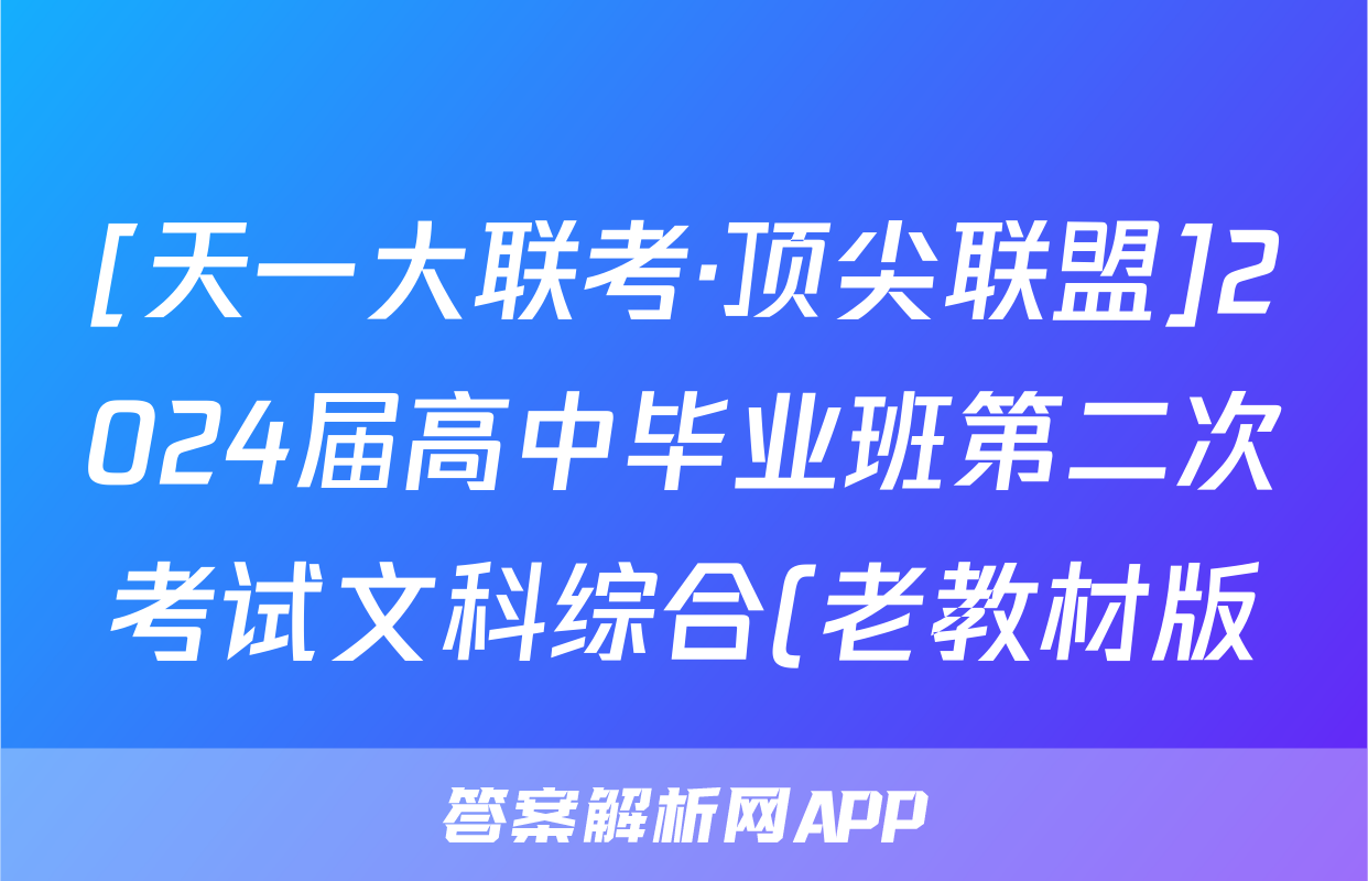 [天一大联考·顶尖联盟]2024届高中毕业班第二次考试文科综合(老教材版)试题正在持续更新,目前2026卷行天下答案网为大家整理了相关试题及答案,供大家查缺补漏,高效提升成绩。