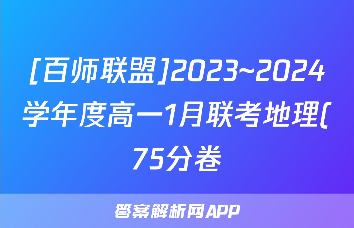 [百师联盟]2023~2024学年度高一1月联考地理(75分卷)试题正在持续更新,目前2026卷行天下答案网为大家整理了相关试题及答案,供大家查缺补漏,高效提升成绩。