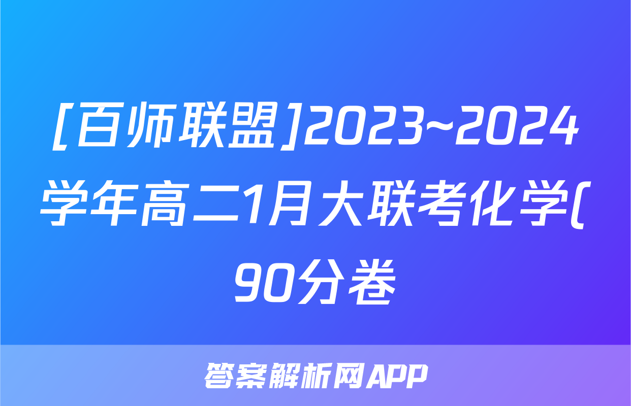 [百师联盟]2023~2024学年高二1月大联考化学(90分卷)答案正在持续更新,目前2026卷行天下答案网为大家整理了相关试题及答案,供大家查缺补漏,高效提升成绩。