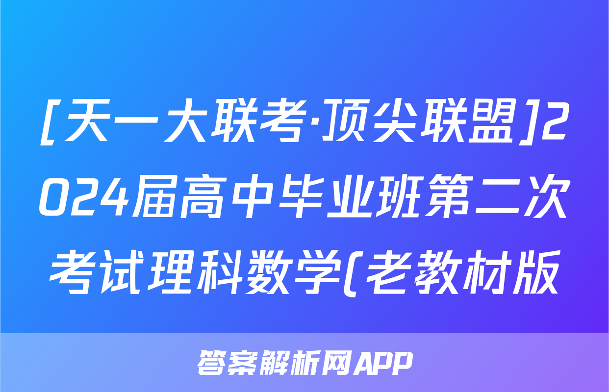 [天一大联考·顶尖联盟]2024届高中毕业班第二次考试理科数学(老教材版)试题正在持续更新,目前2026卷行天下答案网为大家整理了相关试题及答案,供大家查缺补漏,高效提升成绩。