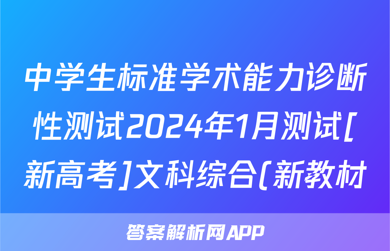 中学生标准学术能力诊断性测试2024年1月测试[新高考]文科综合(新教材)答案正在持续更新,目前2026卷行天下答案网为大家整理了相关试题及答案,供大家查缺补漏,高效提升成绩。