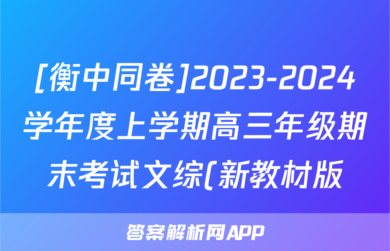 [衡中同卷]2023-2024学年度上学期高三年级期末考试文综(新教材版)答案正在持续更新,目前2026卷行天下答案网为大家整理了相关试题及答案,供大家查缺补漏,高效提升成绩。