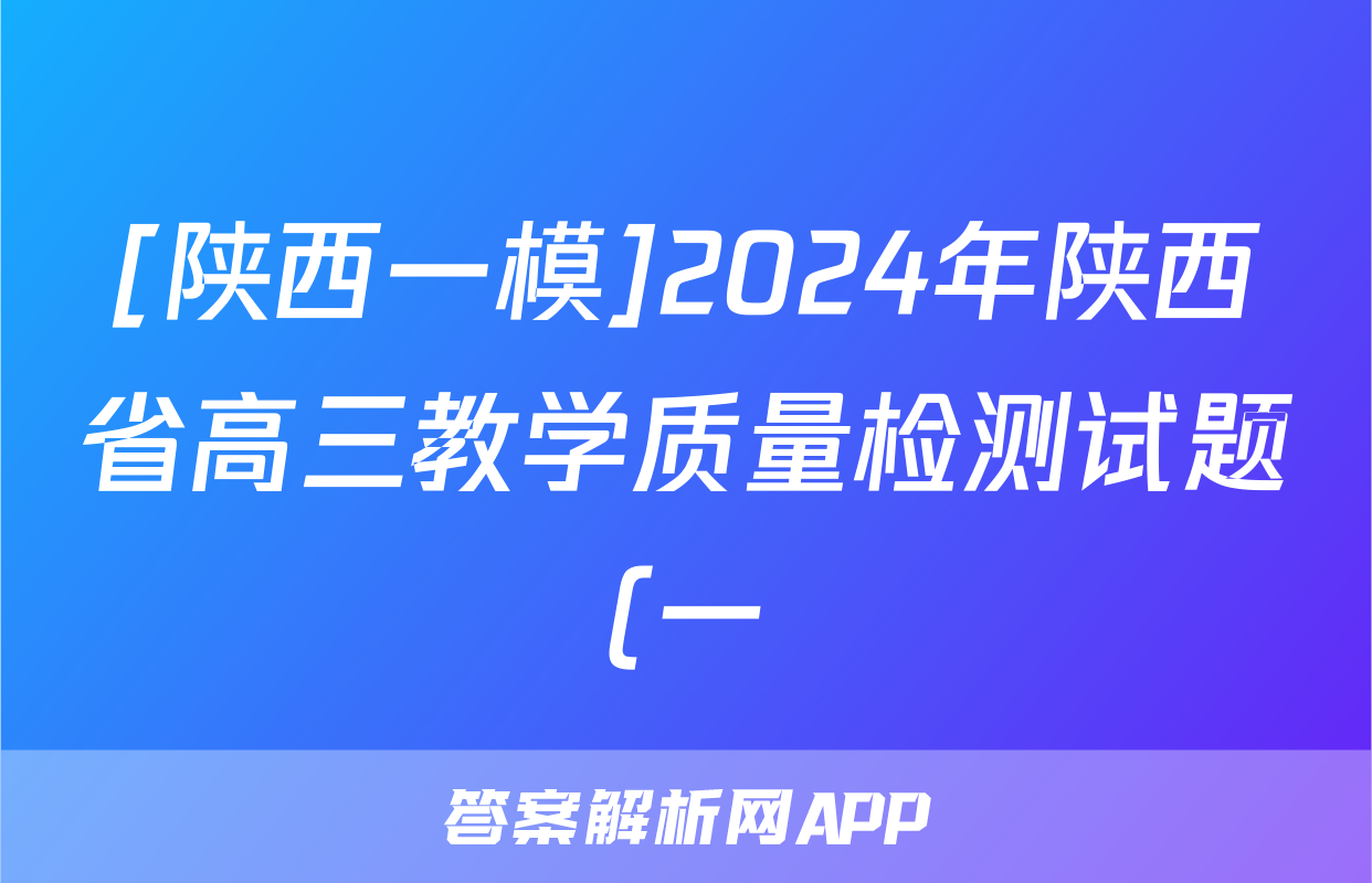 [陕西一模]2024年陕西省高三教学质量检测试题(一)1理科综合答案正在持续更新,目前2026卷行天下答案网为大家整理了相关试题及答案,供大家查缺补漏,高效提升成绩。