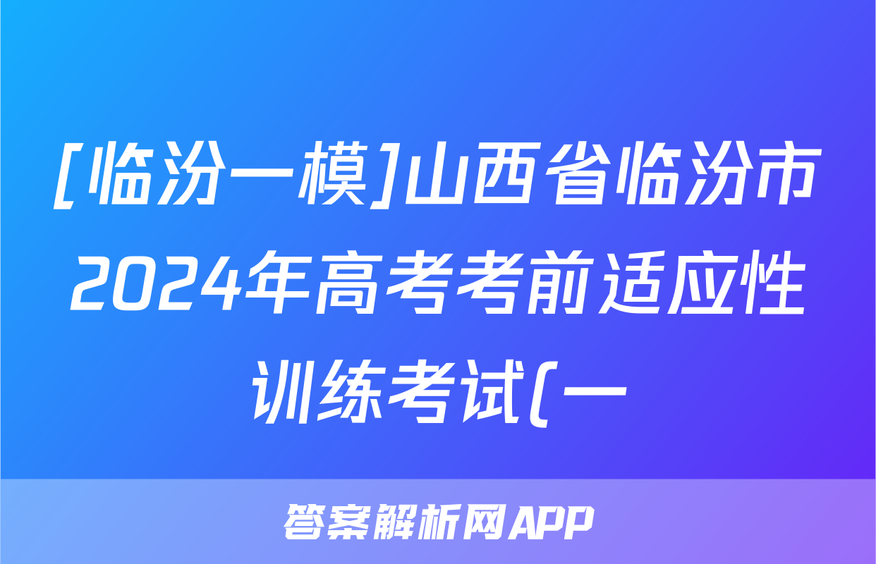 [临汾一模]山西省临汾市2024年高考考前适应性训练考试(一)1语文试题正在持续更新,目前2026卷行天下答案网为大家整理了相关试题及答案,供大家查缺补漏,高效提升成绩。
