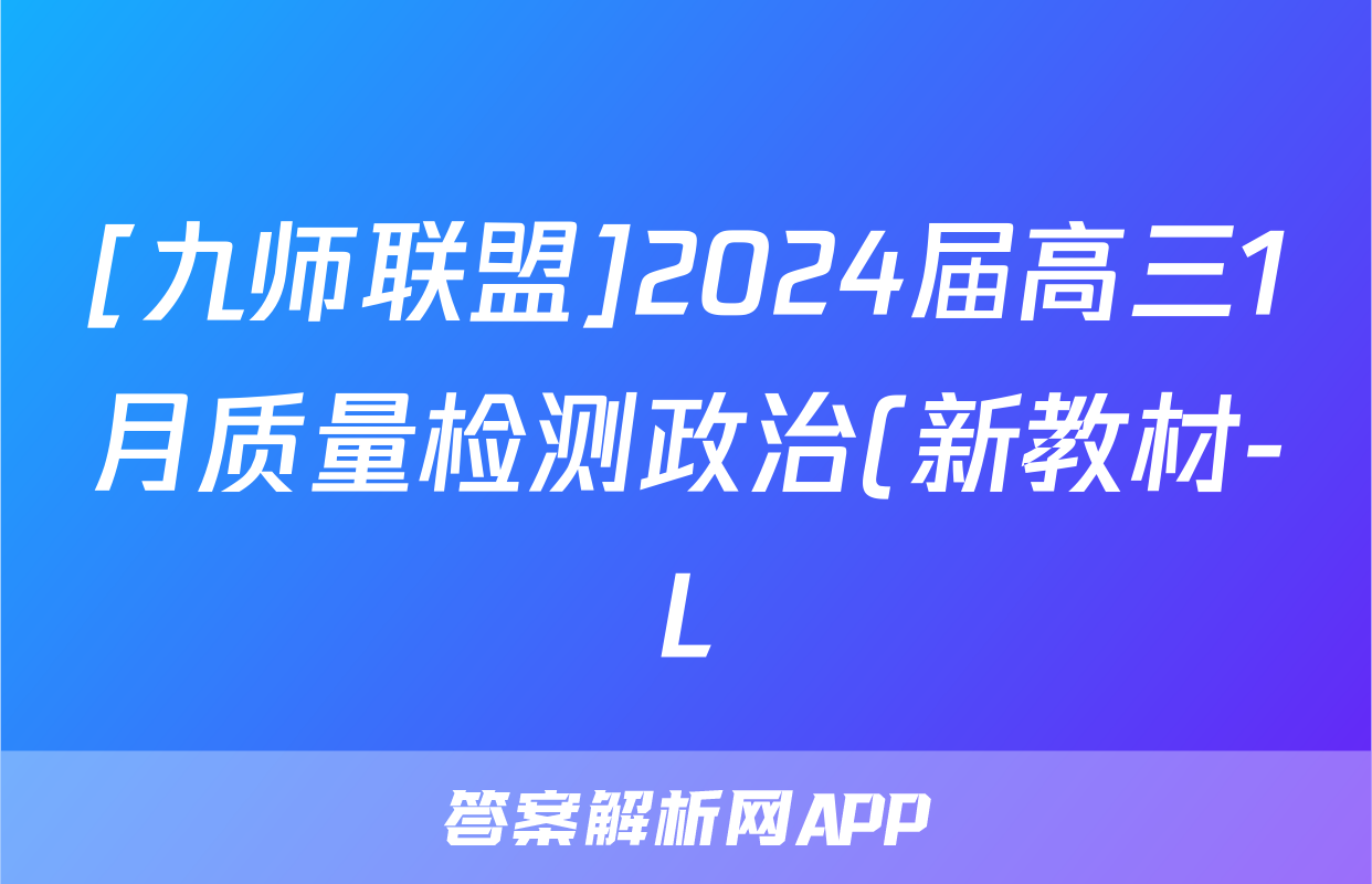 [九师联盟]2024届高三1月质量检测政治(新教材-L)答案正在持续更新,目前2026卷行天下答案网为大家整理了相关试题及答案,供大家查缺补漏,高效提升成绩。