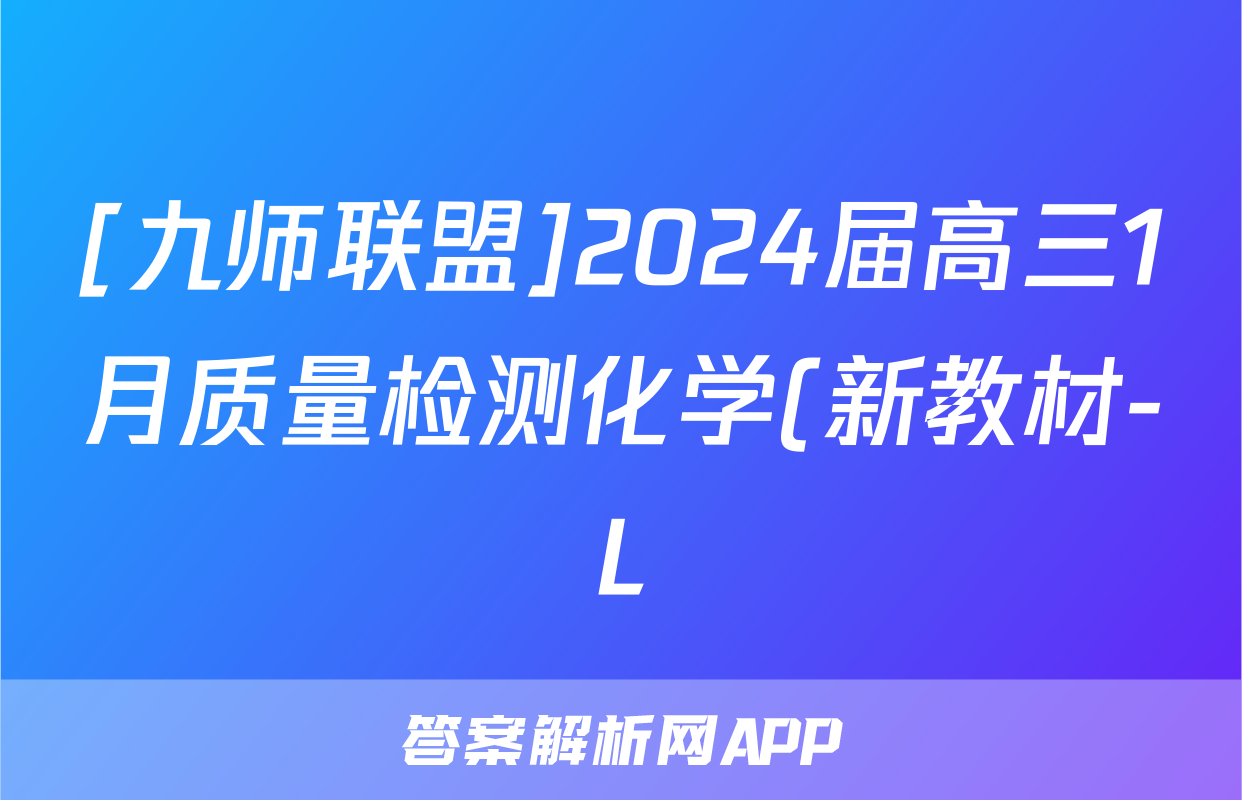 [九师联盟]2024届高三1月质量检测化学(新教材-L)试题正在持续更新,目前2026卷行天下答案网为大家整理了相关试题及答案,供大家查缺补漏,高效提升成绩。