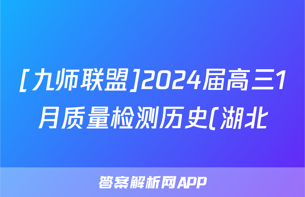 [九师联盟]2024届高三1月质量检测历史(湖北)答案正在持续更新,目前2026卷行天下答案网为大家整理了相关试题及答案,供大家查缺补漏,高效提升成绩。