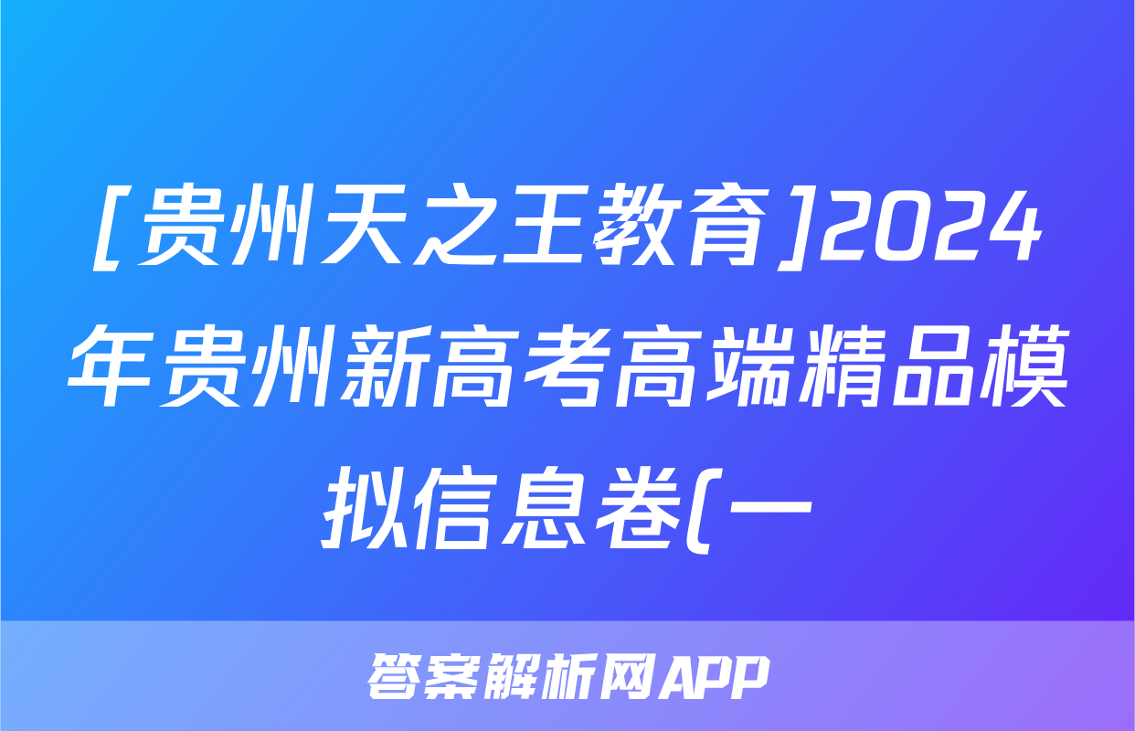 [贵州天之王教育]2024年贵州新高考高端精品模拟信息卷(一)1历史试题正在持续更新,目前2026卷行天下答案网为大家整理了相关试题及答案,供大家查缺补漏,高效提升成绩。