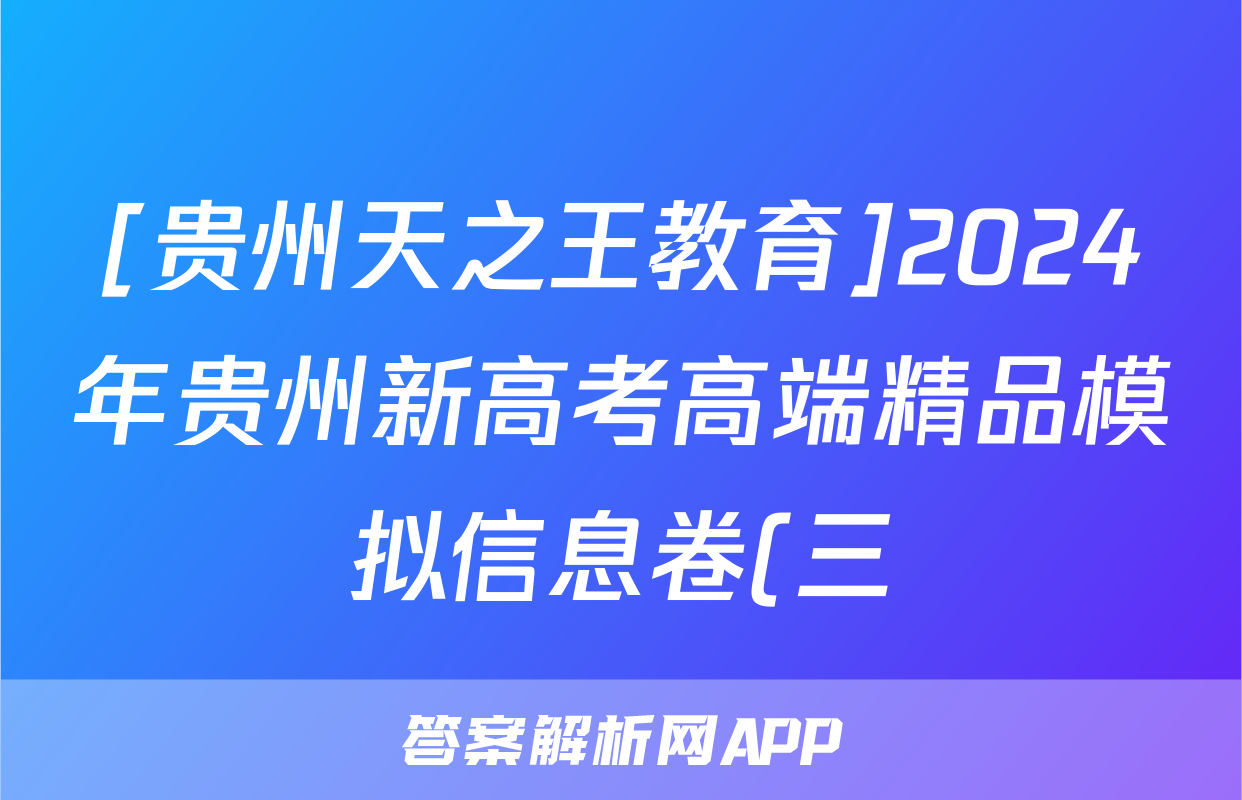 [贵州天之王教育]2024年贵州新高考高端精品模拟信息卷(三)3政治试题正在持续更新,目前2026卷行天下答案网为大家整理了相关试题及答案,供大家查缺补漏,高效提升成绩。