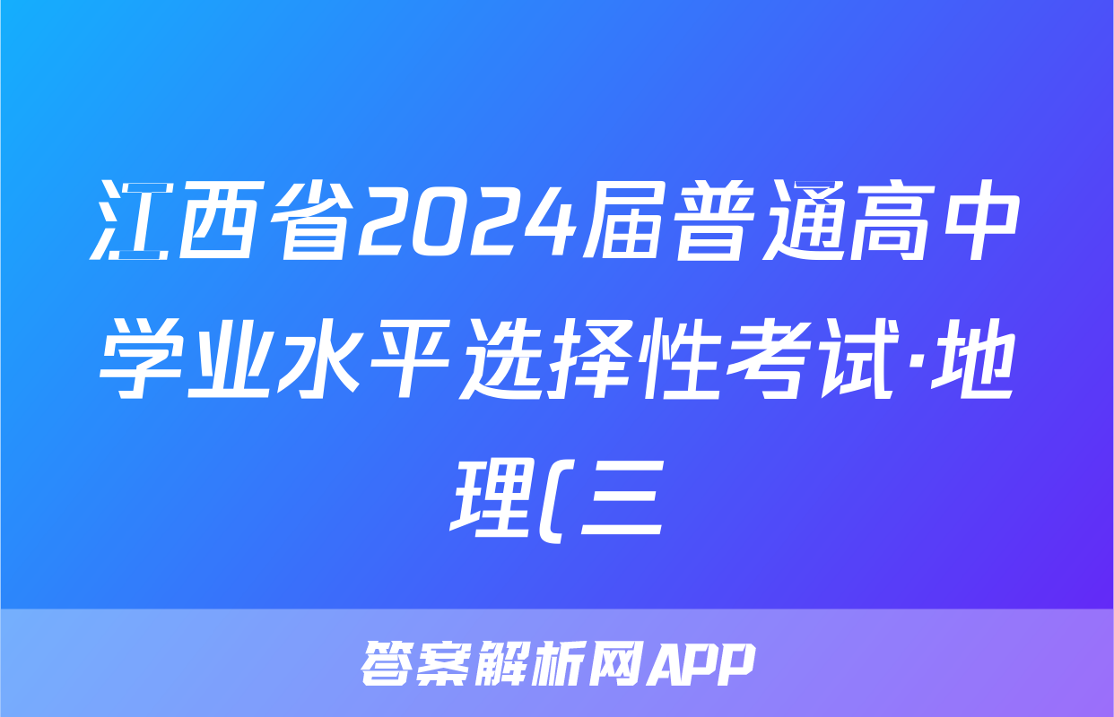 江西省2024届普通高中学业水平选择性考试·地理(三)3[24·(新高考)ZX·MNJ·地理·JX]试题正在持续更新,目前2026卷行天下答案网为大家整理了相关试题及答案,供大家查缺补漏,高效提升成绩。