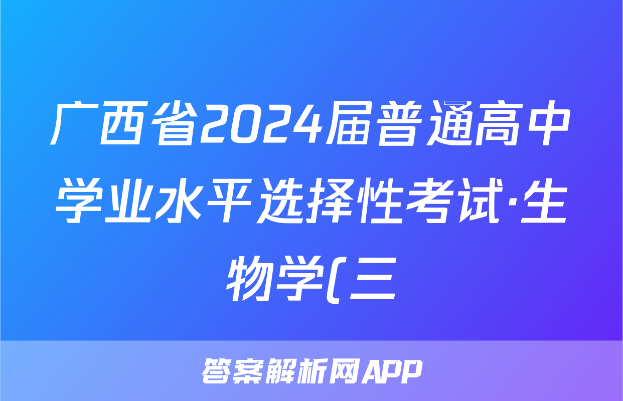 广西省2024届普通高中学业水平选择性考试·生物学(三)3[24·(新高考)ZX·MNJ·生物学·GX]试题正在持续更新,目前2026卷行天下答案网为大家整理了相关试题及答案,供大家查缺补漏,高效提升成绩。