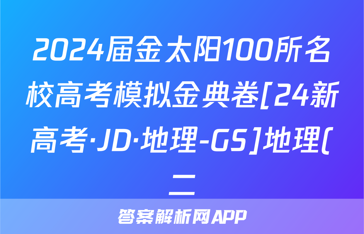 2024届金太阳100所名校高考模拟金典卷[24新高考·JD·地理-GS]地理(二)2答案正在持续更新,目前2026卷行天下答案网为大家整理了相关试题及答案,供大家查缺补漏,高效提升成绩。