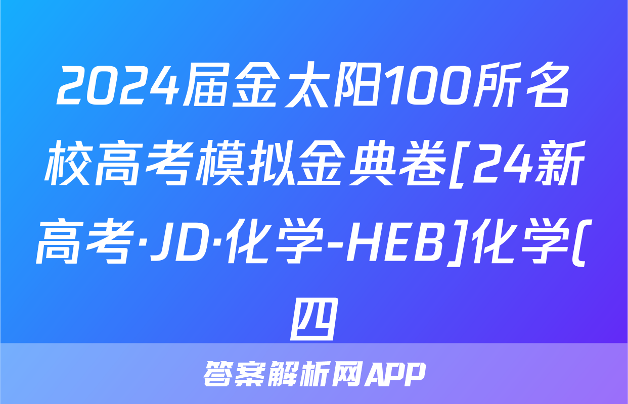 2024届金太阳100所名校高考模拟金典卷[24新高考·JD·化学-HEB]化学(四)4试题正在持续更新,目前2026卷行天下答案网为大家整理了相关试题及答案,供大家查缺补漏,高效提升成绩。