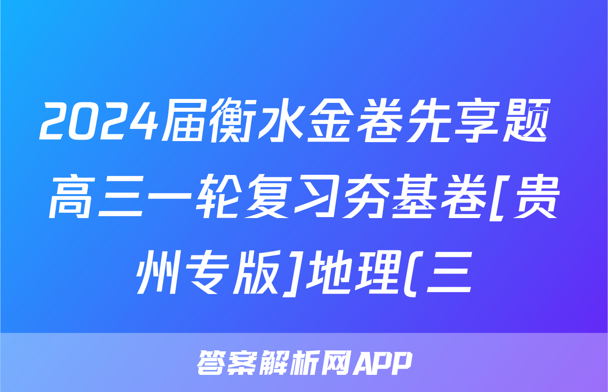 2024届衡水金卷先享题 高三一轮复习夯基卷[贵州专版]地理(三)3试题正在持续更新,目前2026卷行天下答案网为大家整理了相关试题及答案,供大家查缺补漏,高效提升成绩。
