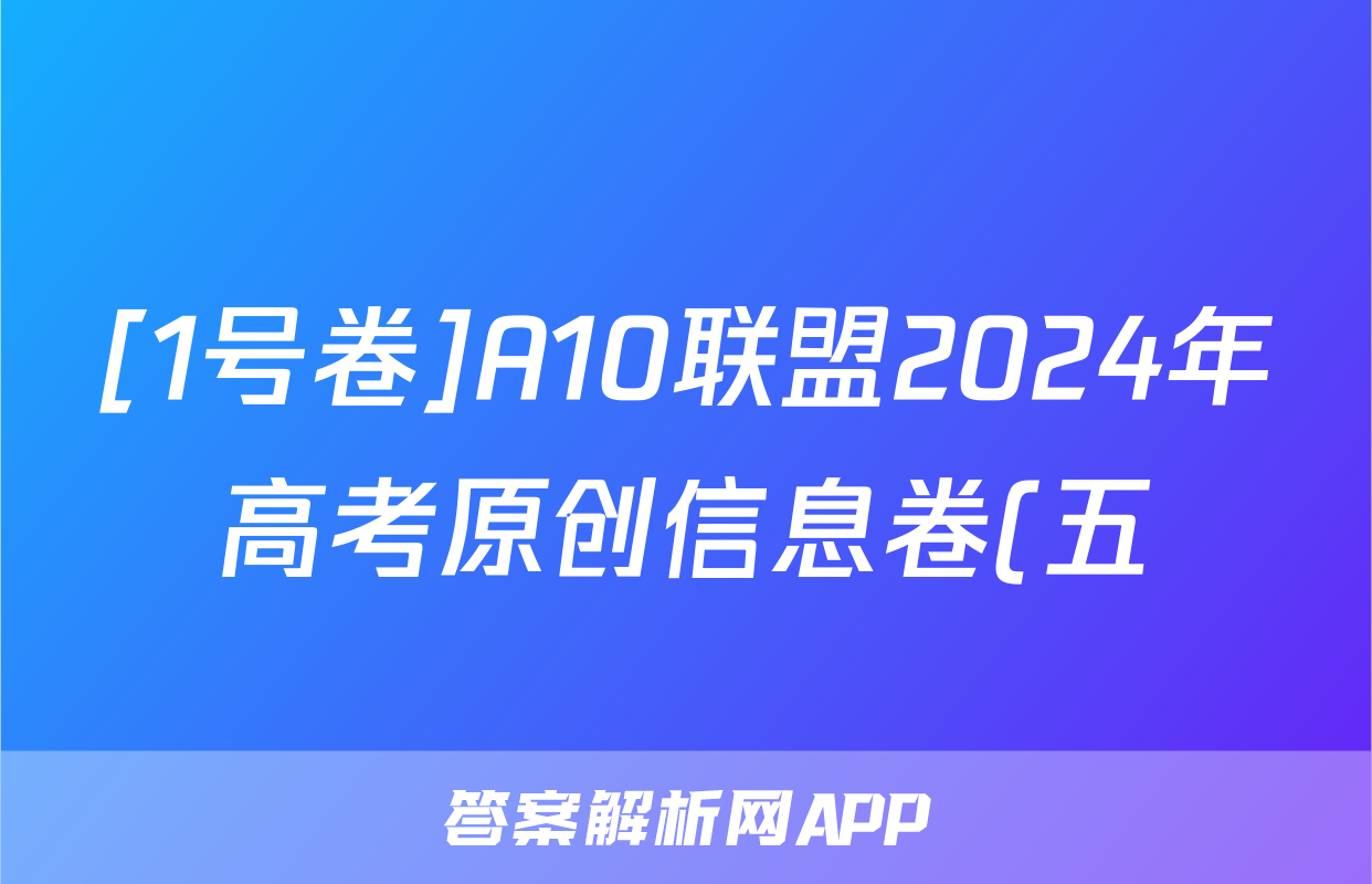 [1号卷]A10联盟2024年高考原创信息卷(五)5数学答案正在持续更新,目前2026卷行天下答案网为大家整理了相关试题及答案,供大家查缺补漏,高效提升成绩。